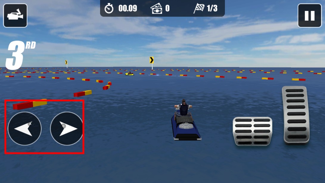 4、通过左侧左右箭头按键,控制水上摩托的转向,灵活调整方向,超越对手。