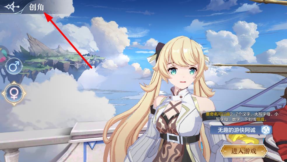 2、进入创角界面,选择角色性别,输入由2-7个汉字、大小写字母等组成的奥奇名,完成角色创建设置。