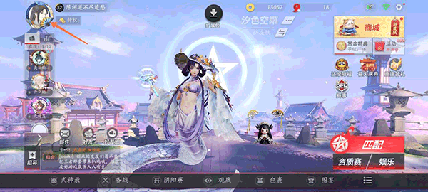 1、打开决战平安京苹果版,进行游戏后,点击左上角头像,进入个人主页;