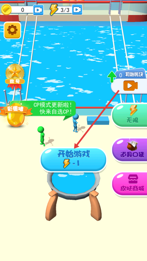 1、看到【CP模式更新啦!快来自选CP!】提示,点击蓝色【开始游戏】按钮,进入游戏。