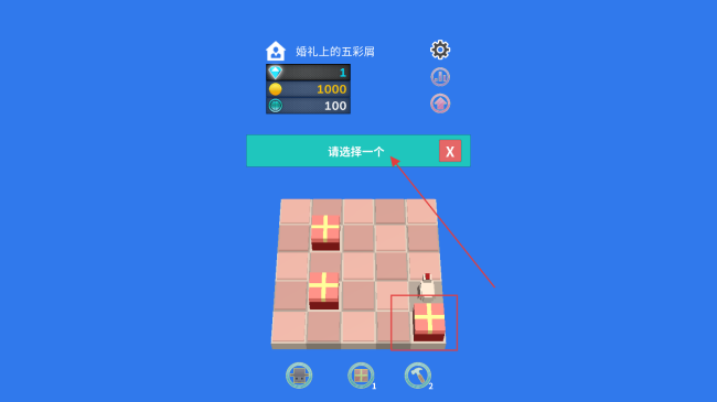 3、当出现【请选择一个】提示时,选择合适的礼盒,进行互动,推进关卡进程,获取相应奖励。