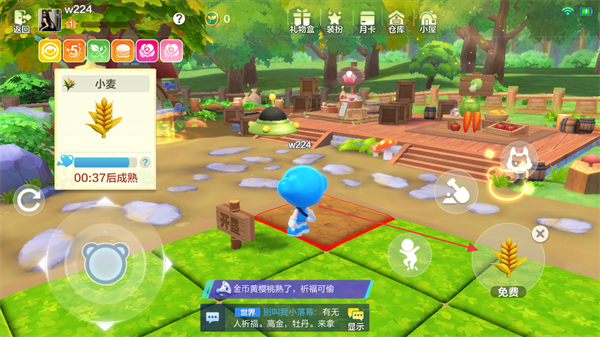3、到达农田后,选择小麦种子,点击免费获取后进行播种,等待作物成熟。
