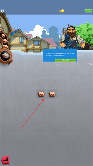 1、按提示将矿石熔在一起,制作装备部件,点击下一步继续。