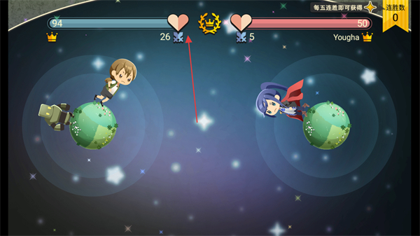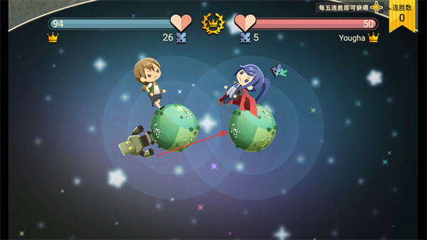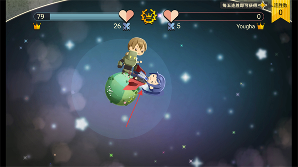 2、操控角色从所在星球向敌方星球移动,寻找合适时机接近敌方角色。