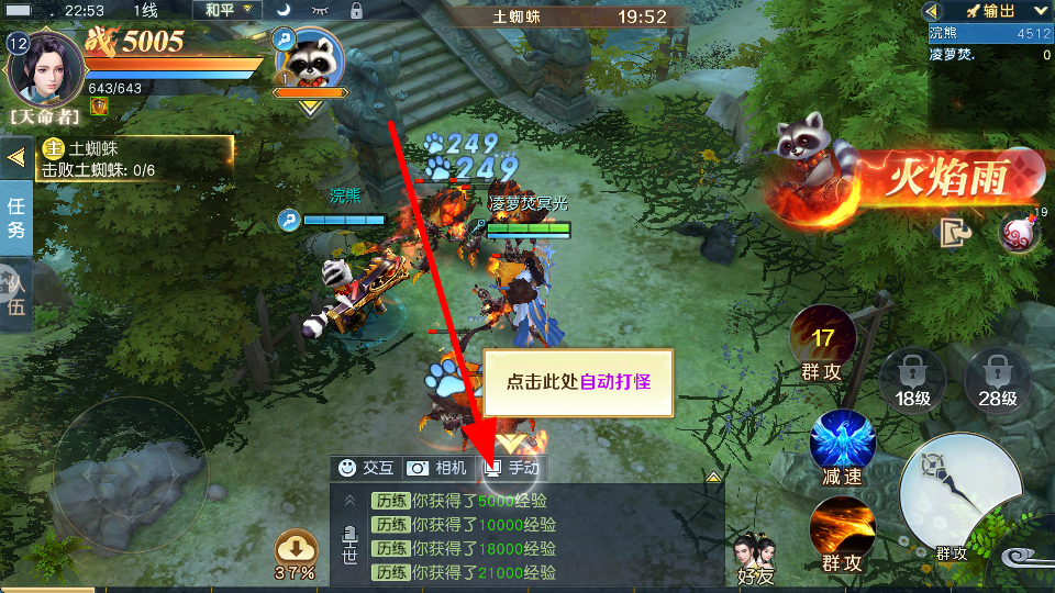 2、点击界面上的自动打怪,角色会自动对怪物发起攻击,无需手动操作,方便快捷的清理怪物。