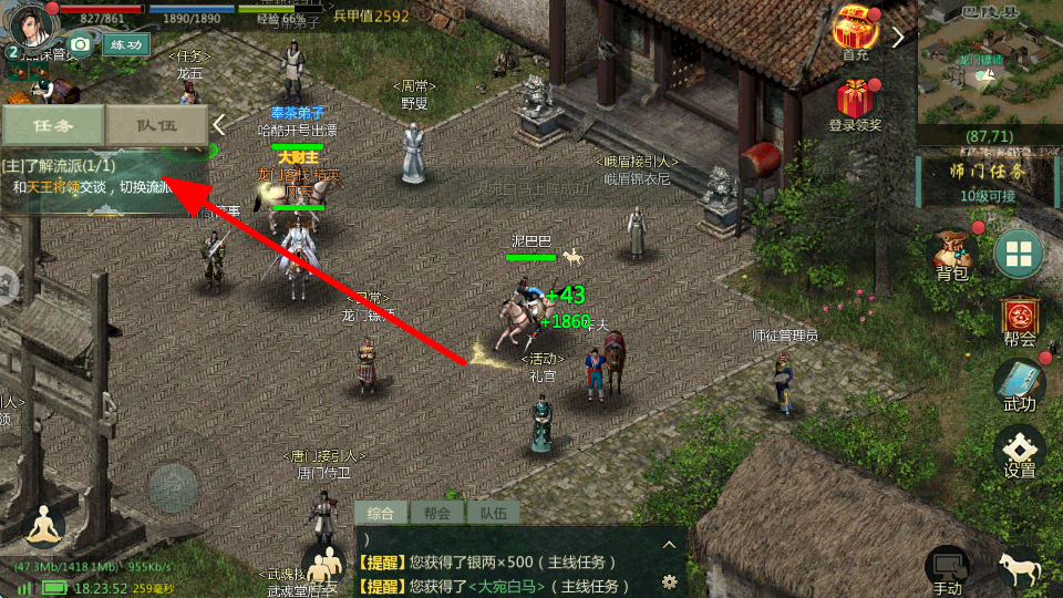 2、跟随任务指引,与指定NPC交谈或完成任务要求,获取经验、道具等奖励,提升角色等级。