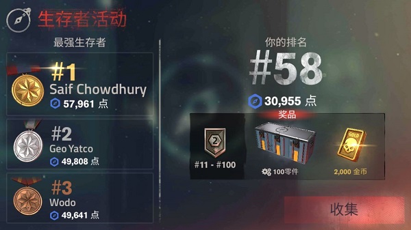 6、生存赛前100比较难进,如果想进可以考虑是否解锁后期武器,在1-3章停留一段时间最好。