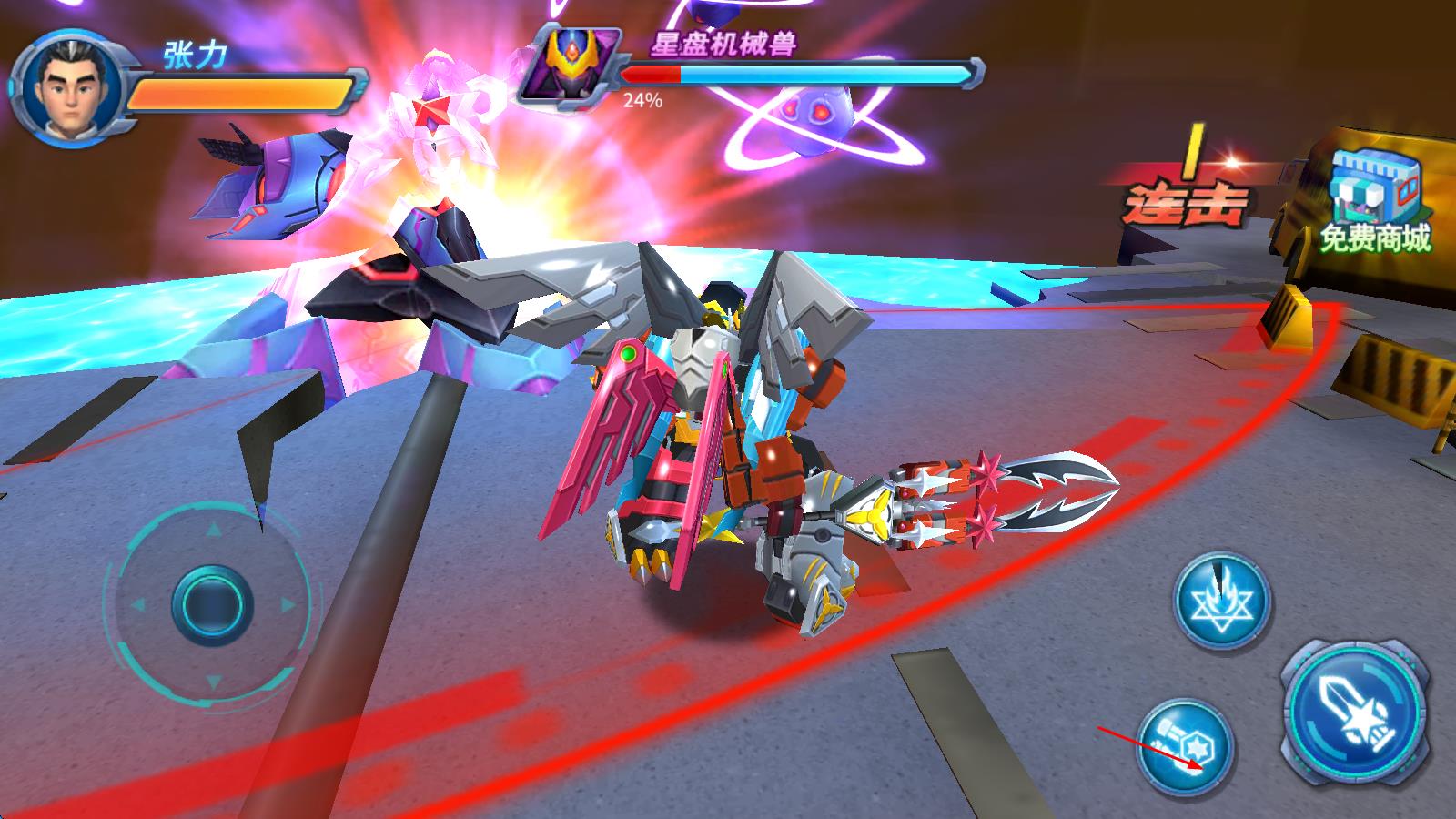 3、持续挑战剧情关卡,收集足够星甲解锁神兽合体功能,面对终极BOSS时,释放合体技能与炫酷大招完成击杀,通关后解锁天神舰玩法,开启更多战斗模式。