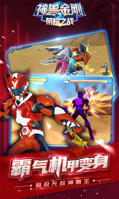 神兽金刚3荣耀之战游戏是一款由成都雷兽互动科技有限公司打造的以神兽金刚为题材的动作手游,采用真正的3D对战视角,搭配华丽的特效,战斗效果不输端游,多段式攻击设计大大增强了操作体验中的打击感,玩法模式丰富,除了单人剧情闯关,还包含团队副本、竞技场PVP等模式,还有机械兽助阵系统,天罡机械兽可提升战力助力闯关。