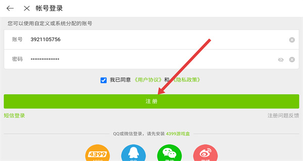 3、在进入到注册页面中,在上方输入框填写好注册账号信息后,点击下方注册按钮即可开始注册。