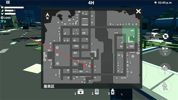 2、打开大地图,依据标记规划路线,明确探索与战斗区域,如前往居民区。