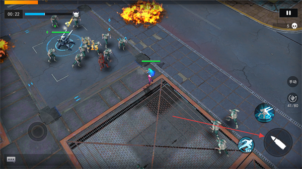 3、当敌人密集时,点击右侧技能按钮,如发射弹药技能,对敌人造成范围伤害。