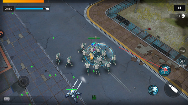 4、随着游戏进程推进,提升角色等级,利用技能和走位,消灭一波又一波敌人。