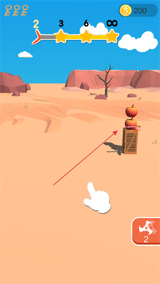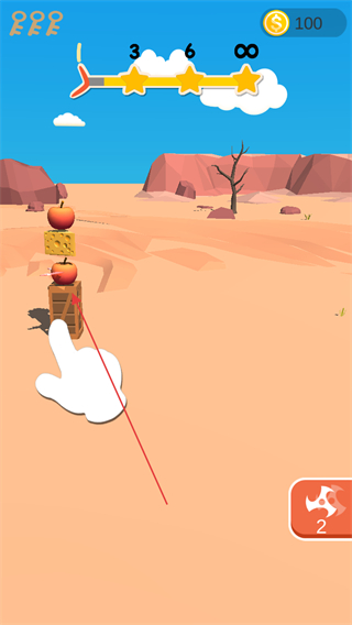 1、根据提示拖动飞镖,瞄准带有苹果的木箱,调整角度后发射飞镖。