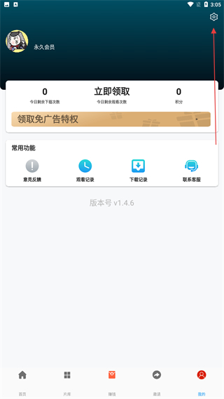 2、在我的页面内,用户需点击右上角设置的功能按钮。