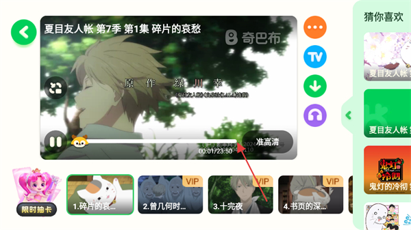 4、在动漫播放页面,点击小窗即可放大观看夏目友人帐第一集内容。