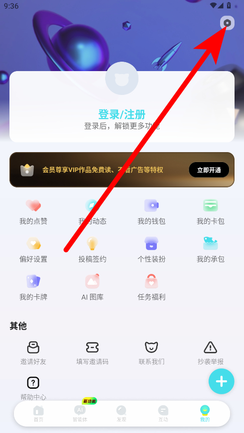 2、在个人页面中,点击右上角设置图标,进入设置界面。