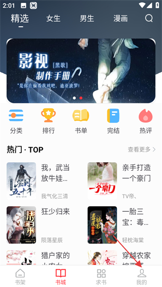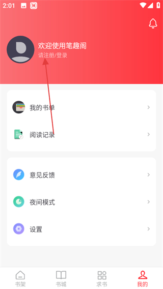 1、进入笔趣阁书城页面,点击底部我的,进入个人页面。