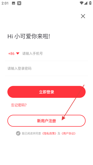 3、在登录注册选择页面,点击新用户注册,进入注册信息填写页面。