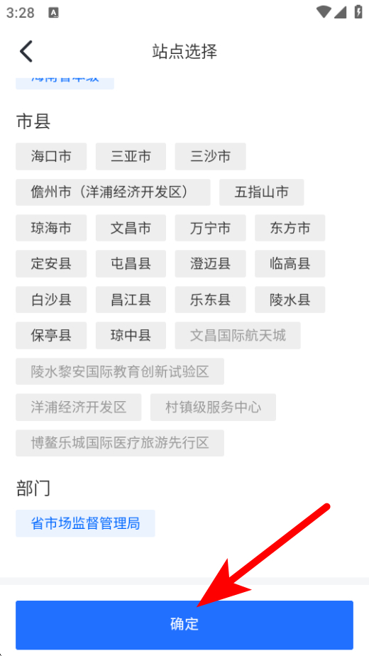 4、选择站点后需要点击确定,按照流程完成企业变更登记操作。