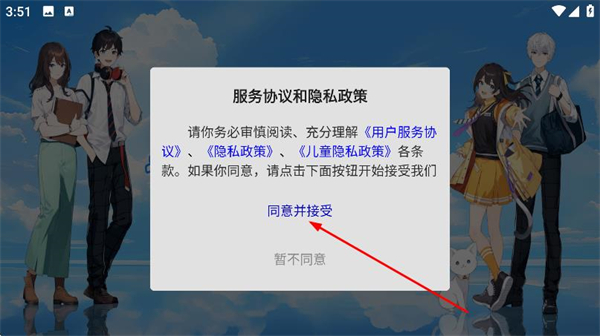 1、打开欧拉数理化,在弹出的页面,点击同意并接受。