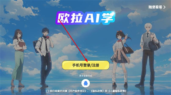 2、进入主界面后,点击中间的手机号登录/注册按钮。