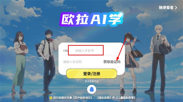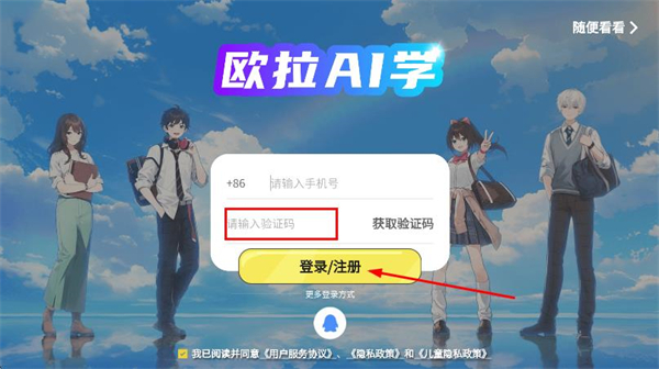 4、填入收到的验证码,点击登录/注册即可登录账号。