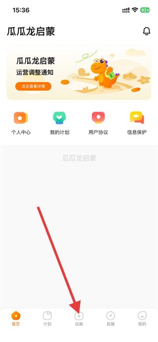 1、打开瓜瓜龙启蒙,点击底部导航栏中的动画选项。