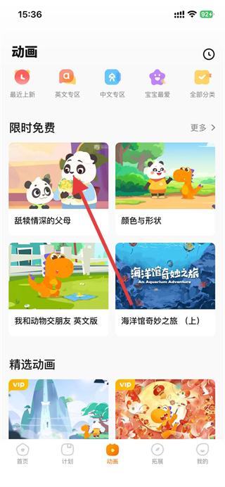 2、在动画页面中,选择想要观看的动画内容,点击进入。