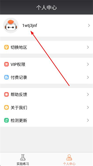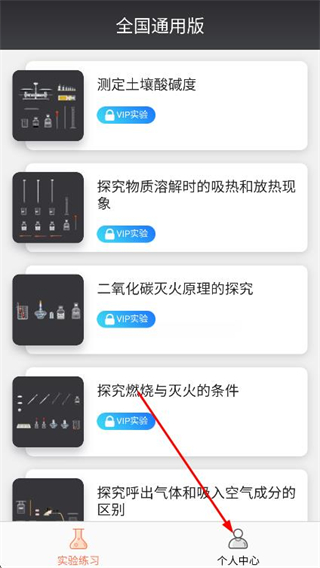 1、打开化学实验加试,点击底部导航栏中的个人中心选项。