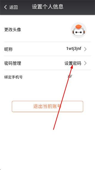 3、在设置个人信息页面中,找到密码管理选项,点击设置密码。