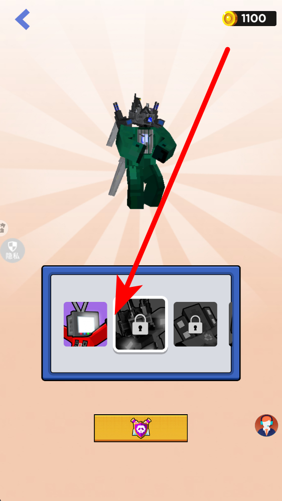 1、进入游戏,在皮肤界面查看可解锁皮肤,通过积累金币、完成任务等方式,解锁心仪皮肤如电视造型,更换后打造专属角色外观。