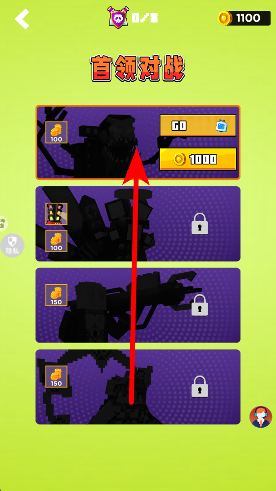 2、开始进入首领对战界面,选择可以挑战的机器首领恐龙形,花费对应金币1000可以开启战斗,进入游戏城市场景,准备与首领交锋。