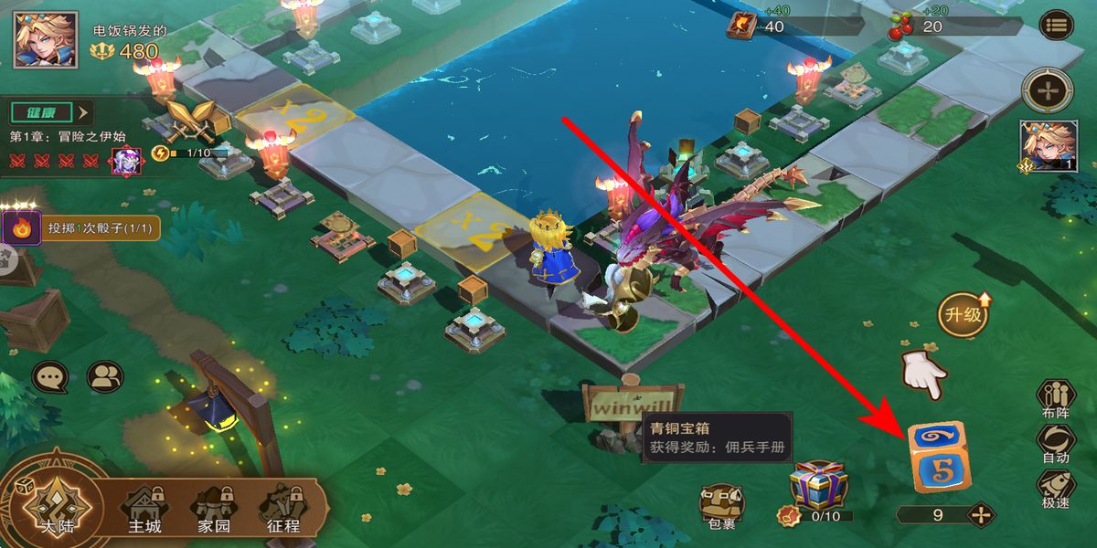 1、骰子投掷探索点击界面骰子图标,消耗每日投掷骰子次数触发事件,可以遭遇战斗、开启宝箱,合理的规划次数推进冒险进程。