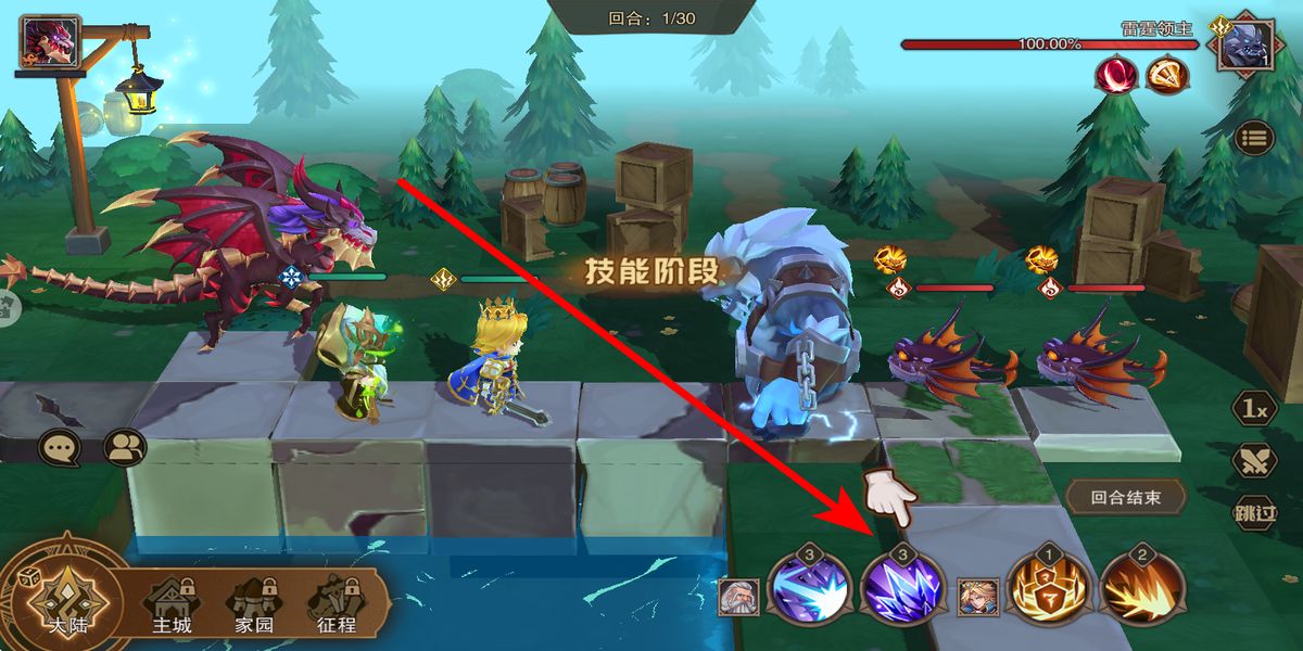 2、战斗技能释放进入回合制战斗,观察技能阶段提示,点击下方技能图标释放,搭配技能顺序,把控回合节奏,提升战斗输出效率。