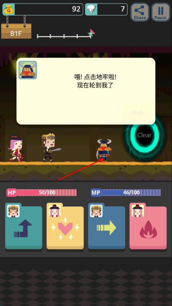 3、击败骷髅后,遇到新角色提示,点击对应角色,使其加入队伍,继续在地牢探索,推进冒险进程 。