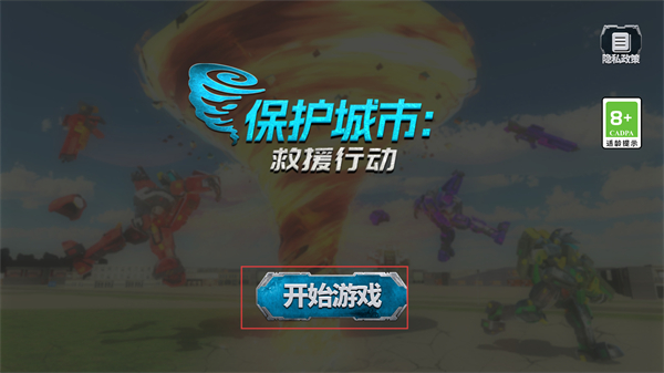 1、点击【开始游戏】,进入《保护城市救援行动》,开启城市救援任务。