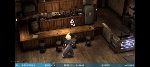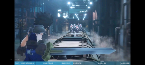 pv中点击了选择按钮后看到扎克斯遇到伊芙利特的画面,在说完台词后,画面和ff7原版的遇敌一样旋转放大,进入战斗页面。