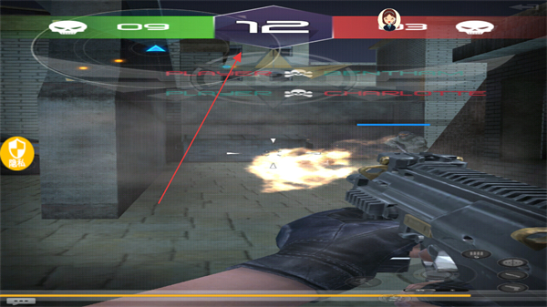 1、在对战中使用枪械射击,关注上方的分数和击杀数,消灭敌人提升己方分数。