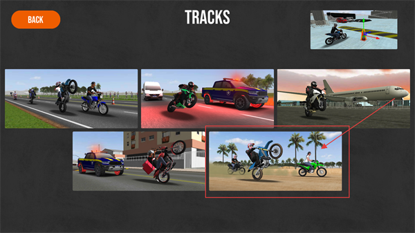 2、赛道选择界面中,可选择沙漠风格赛道,体验特技骑行,在此提升摩托车操控技巧与反应能力。