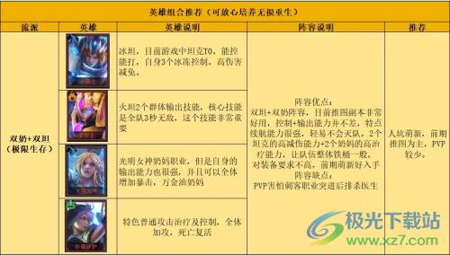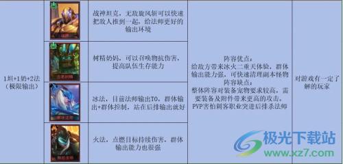 这套阵容有着非常可观的输出能力,而且续航能力也是非常强大,使用两个战士输出+控制,两个奶续航+控制+输出,特别是一些难度比较大的副本,优先选择。