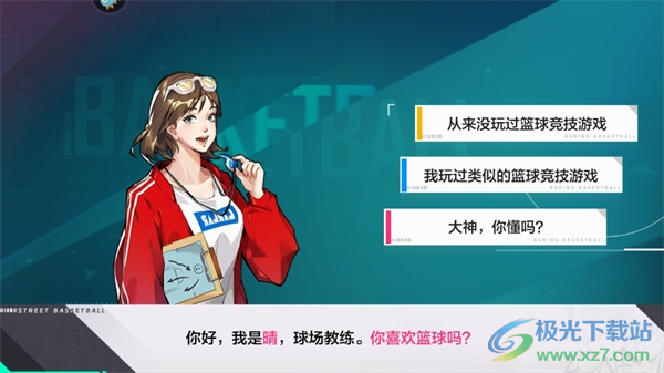 2、看到球场教练后选择自己对于篮球手游的熟练度。