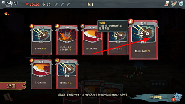 2、抽牌时遇到格挡等防御卡牌,可根据战斗需求选择使用,这类卡牌能在敌方回合提供防御效果,提升角色生存能力。