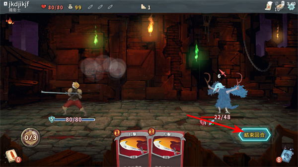 3、在己方回合结束阶段,点击结束回合按钮,这是推进战斗流程的关键操作,点击后进入敌方回合,承受敌方攻击准备。