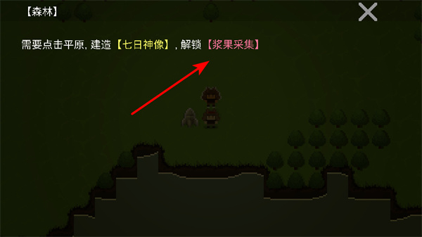 2、根据提示点击平原区域,建造七日神像,这是解锁新功能如浆果采集的核心操作,建造后可拓展生存与发展玩法。