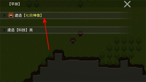 4、在平原建造界面,选择建造七日神像选项,这是推进建筑流程的基础操作,选择后可完成神像建造,解锁对应功能。