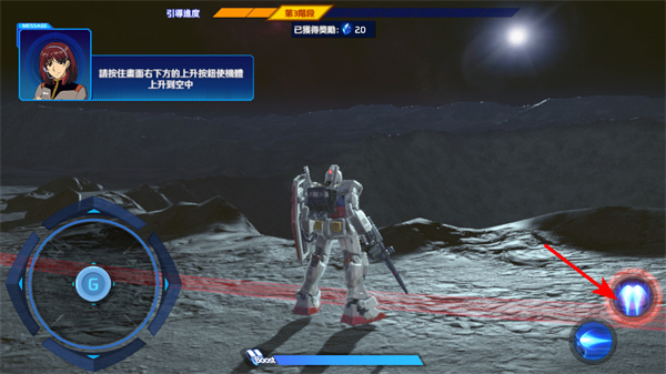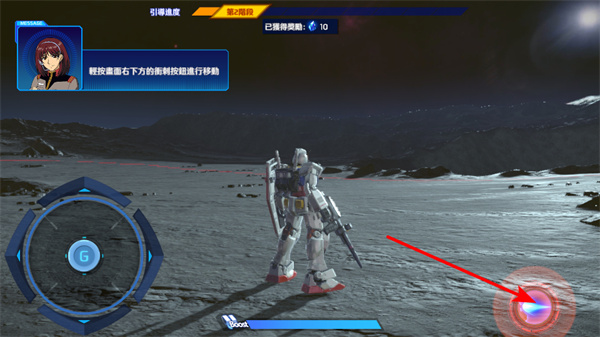 2、在引导阶段,操控左侧摇杆进行移动,这是控制高达移动的核心操作,通过摇杆可调整高达在场景中的位置,完成移动任务。