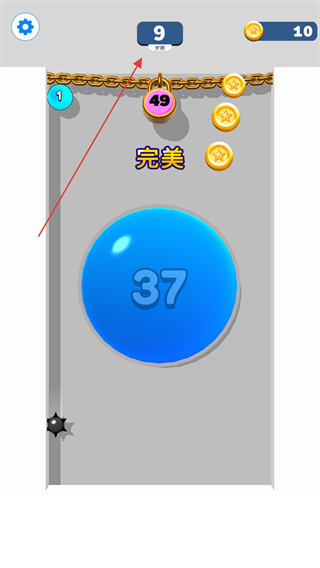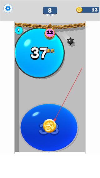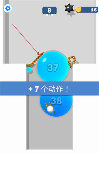 3、当气球碰到上方的链条时,可触发+7个动作!等奖励,助力游戏进程。