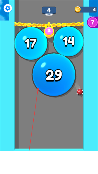 2、控制气球避开红色尖刺等障碍物,同时让气球合并,增大气球数字和体积。