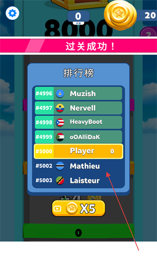 4、不断挑战关卡,提升分数,争取在排行榜上获得更高名次。